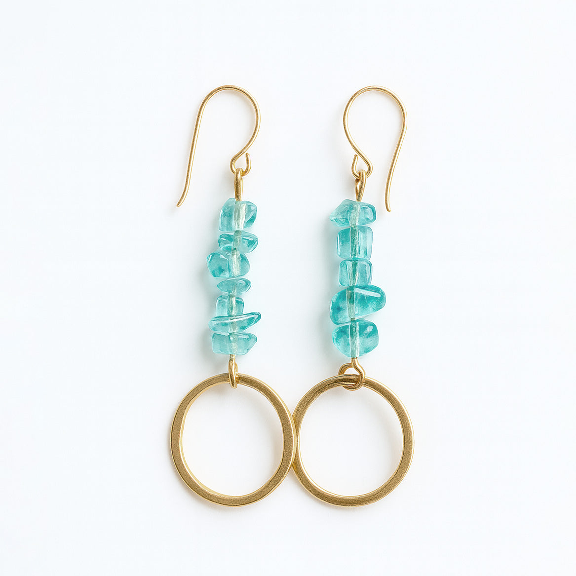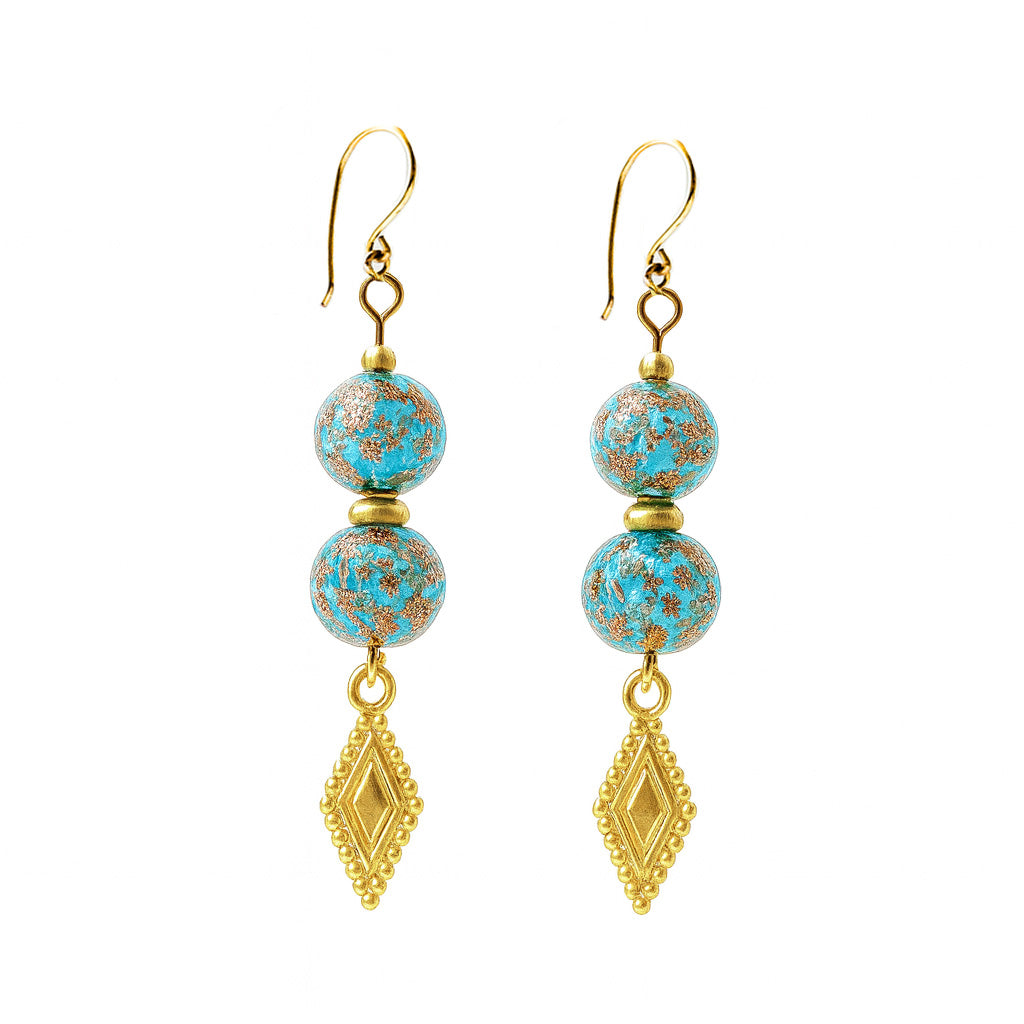 Turkoosi lasihelmikorvis ja kultainen rengas