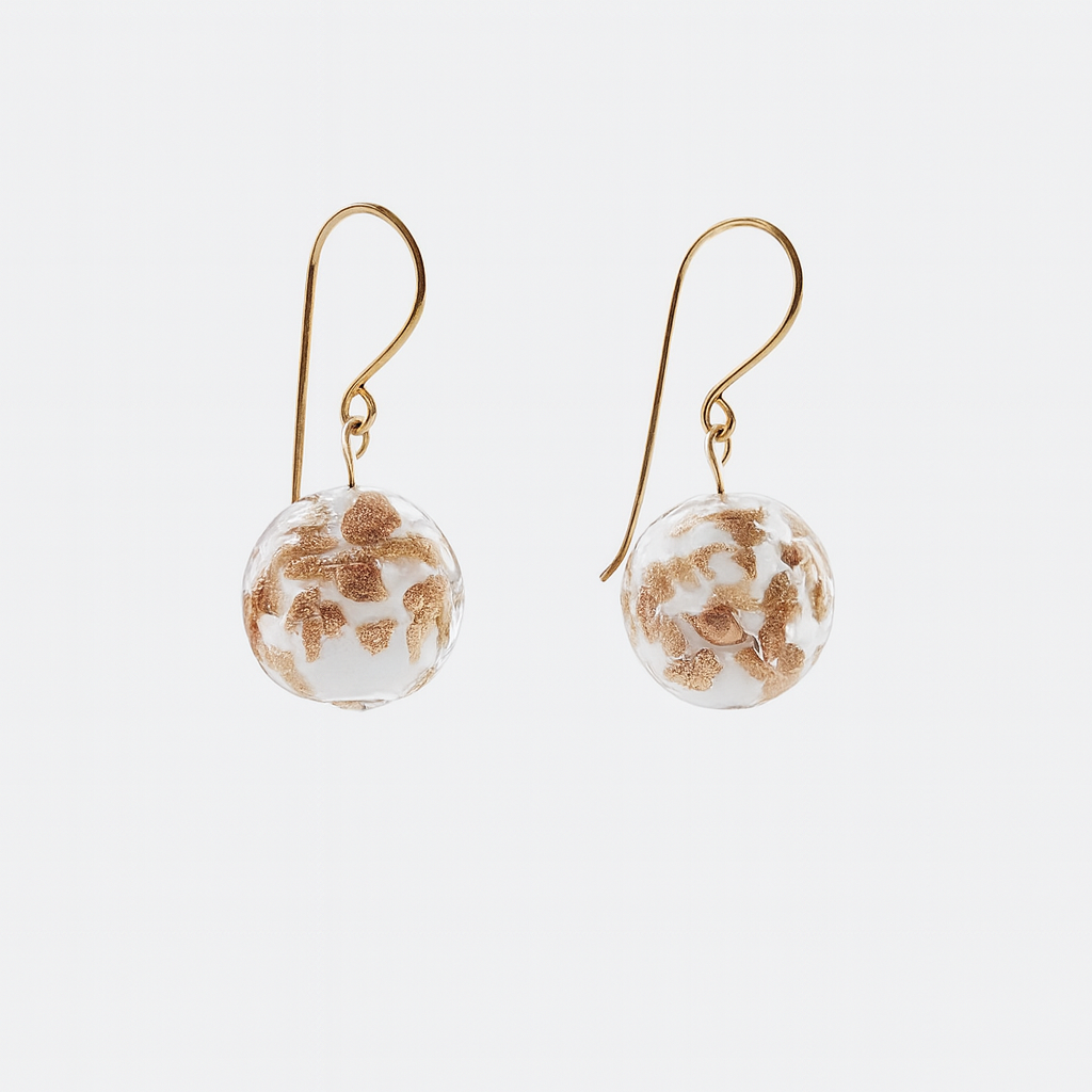 Valkokultaiset marmoripallokorvakorut