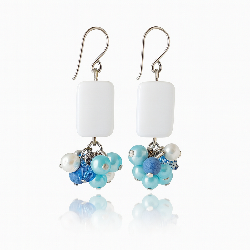 Valkoiset suorakulmiokorvakorut helmikimpulla